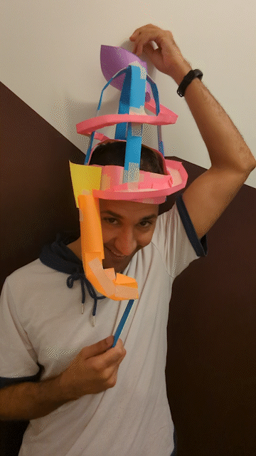 Enjoy your favorite snack with this Rube Goldberg style contraption Snack Hat. Create ramps, chutes and funnels. Grab some paper, tape, scissors and a snack!